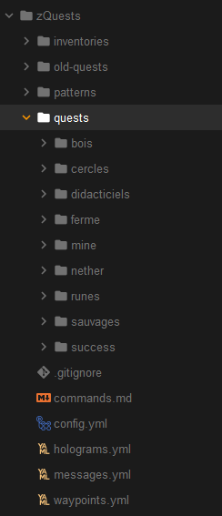 1.0The configuration of the zQuests plugin for the FairySky server